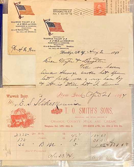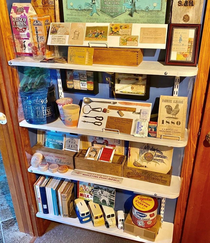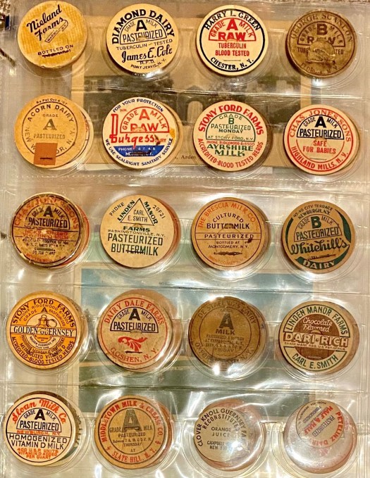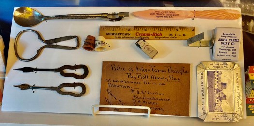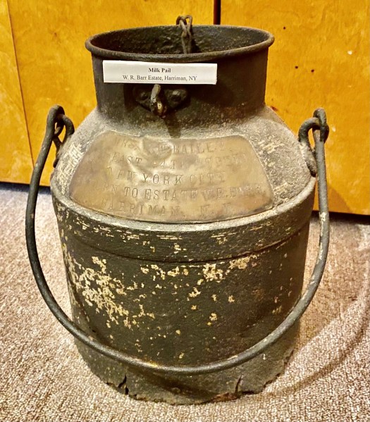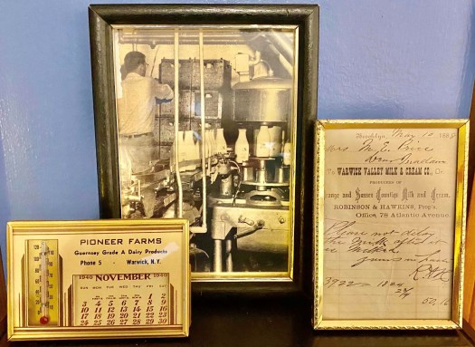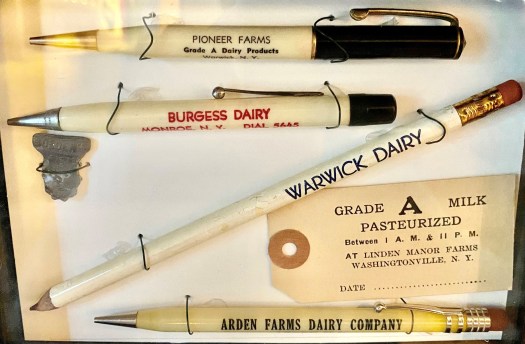 The William S. Johnson Collection of Orange County, New York Dairy Farming History seeks to preserve the three-century legacy of Orange County’s fluid milk, butter, cheese, and dairy products. The collection contains an ample assortment of documents and images as well as books, ephemera, and go-withs relative to this topic. In addition, larger items include several milk cans from local farms, a wooden Borden’s Condensed Milk barrel used in B.S. Pembleton’s Store of Central Valley, NY, a rare circa 1936 Orange County map indicating dairy farms, and a barn storage box from Walgrove Farms of Washingtonville, NY.