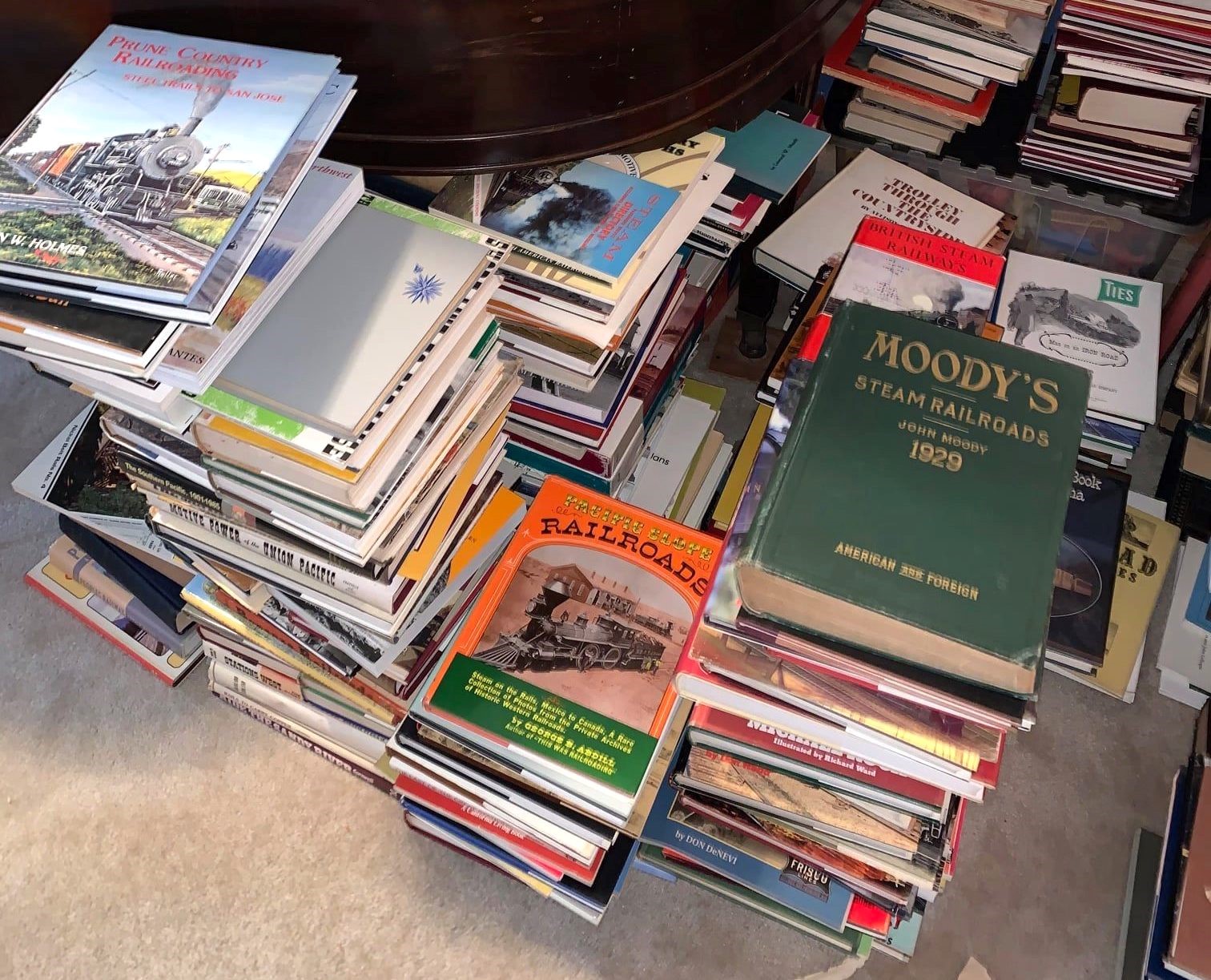The library welcomes those seeking to research the intricate history of local railroads. Many of the books are on display in the library room while others are stored in the humidity-controlled archive room.