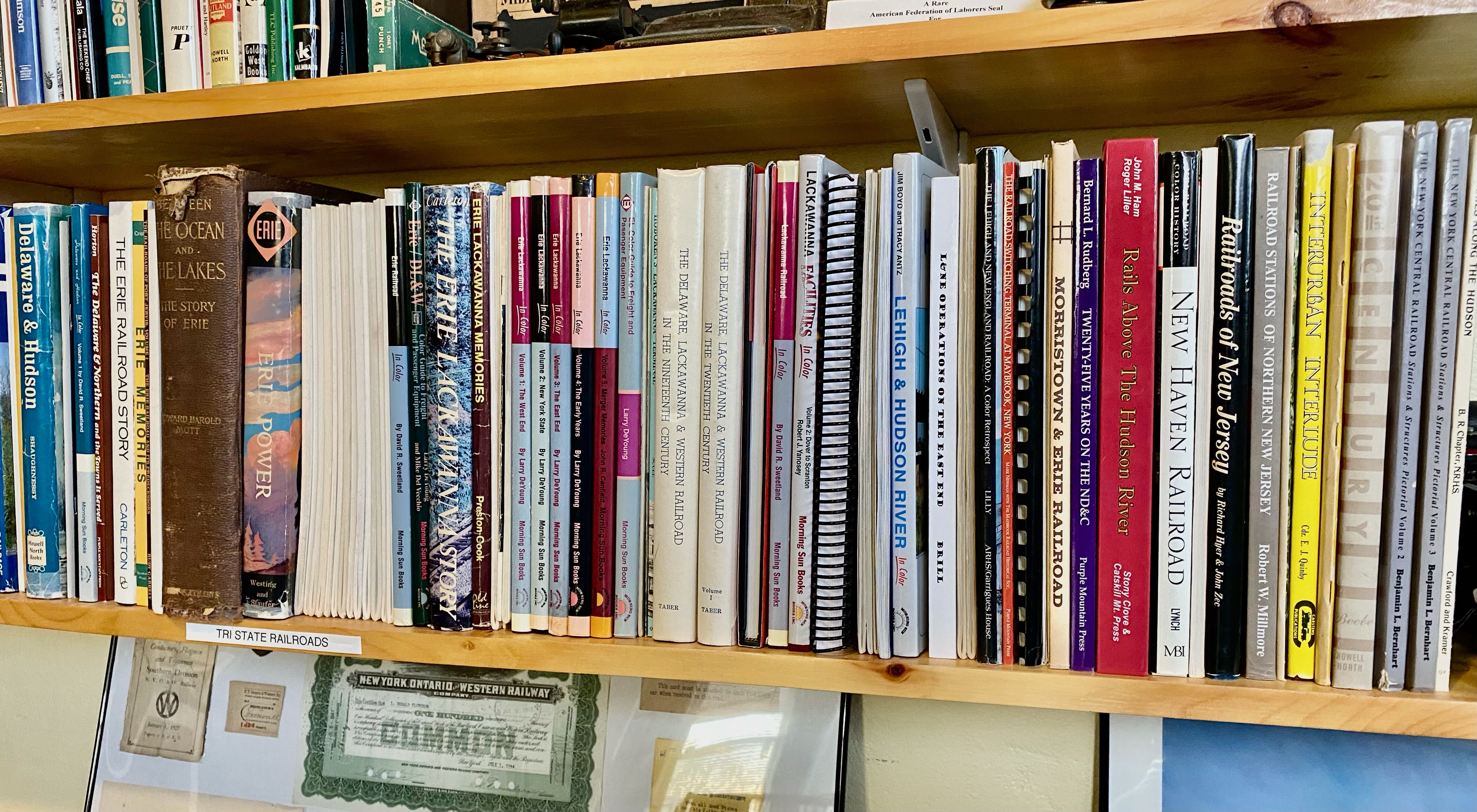 The Marvin H. Cohen Library of American Railroad History contains over 500 books covering American railroads, with an emphasis on those in the northeastern United States and New York’s Hudson Valley. Books are also included covering railroads in other regions of the United States—the majority of which had connections to Gilded-Age businessmen that lived in or near the Hudson Valley. Among the collection’s noteworthy features include a first edition copy of Edward Harold Mott’s Between the Ocean and The Lakes: The Story of The Erie, several editions of New York State railroad reports ranging from the late 1860s to the turn of the twentieth century, a complete assortment of the New York, Ontario & Western Railway’s first twenty-six annual reports, and a turn-of-the-century ledger of engineers and firemen from the New York, Ontario & Western Railway.