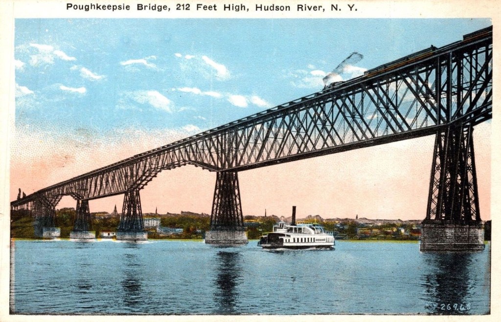 When it burned in 1974, the loss of the Poughkeepsie Railroad Bridge dealt a major blow to Orange County’s remaining railroads. The bridge is now better known as the Walkway Over The Hudson (Library of Congress).