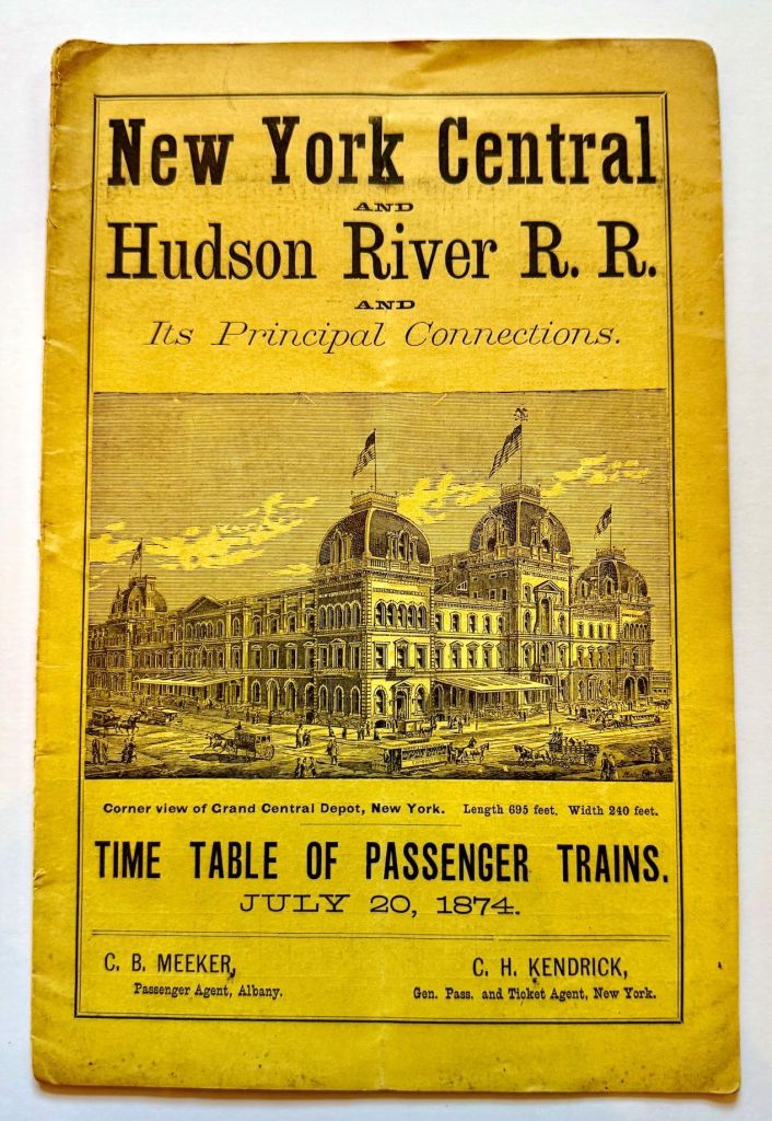 This New York Central & Hudson River Railroad timetable was published in 1874, only three years after the original Grand Central Depot was completed. Today, Grand Central Terminal sits on its site.